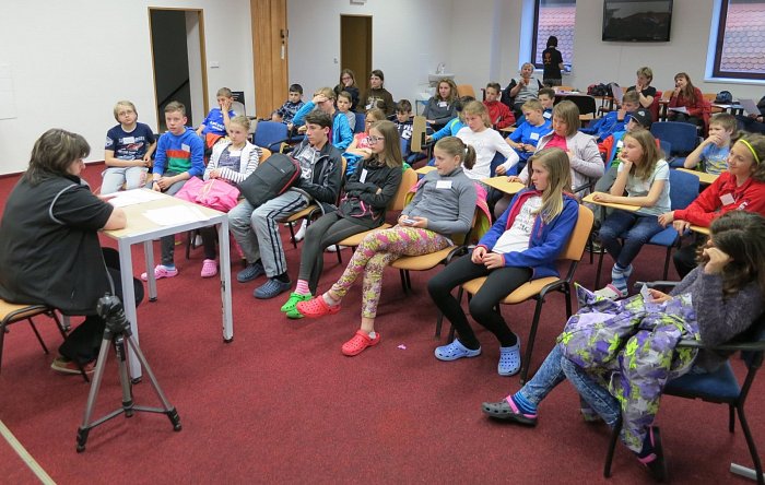 Na první termín se k nám chystalo cca 30 žáků šesté a sedmé třídy. Nakonec prořídlé řady šesťáků doplnila jako LAST MINUTE akci skupina páťáků. Počasí této skupině vysloveně nepřálo. Byla taková zima a navíc vytrvale pršelo, že nakonec operativně místo cyklistického přesunu byla zvolena náhradní doprava linkovým autobusem.
